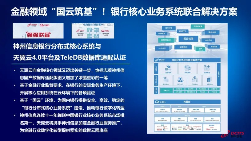 在金融核心应用产品适配方面,神州信息金融核心平台与天翼云整合适配,展现了神州信息在技术层面的深度合作和产品的高度兼容性,通过这些不断的技术创新和服务优化,在金融行业持续释放天翼云作为“国云”的领先能力,巩固其在行业的领导地位。